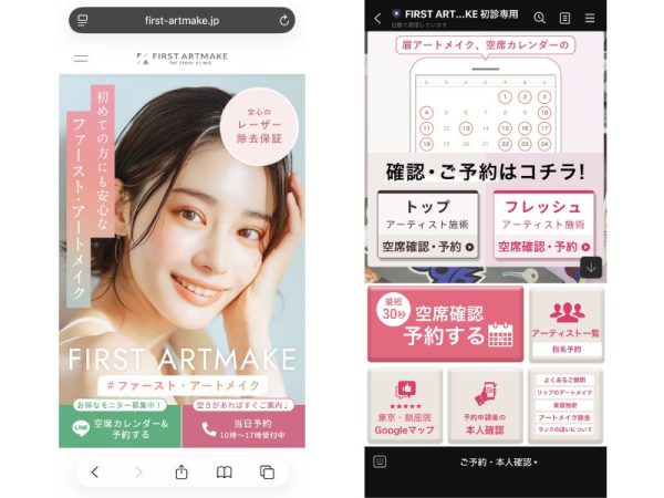 FIRST ARTMAKE公式サイト(公式LINE)またはお電話からご予約できます。初めての方はまずカウンセリングから予約をしましょう。
