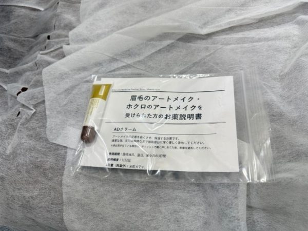 施術直後は赤みや腫れはなく、軟膏を塗ってもらい、1本分を自宅用に渡されました。