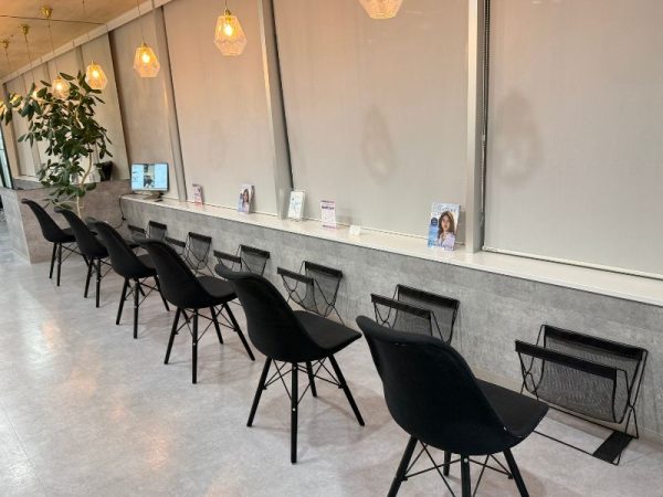受付の向かい側にある待合スペースは仕切りがなく、椅子が並ぶシンプルなつくりになっています。