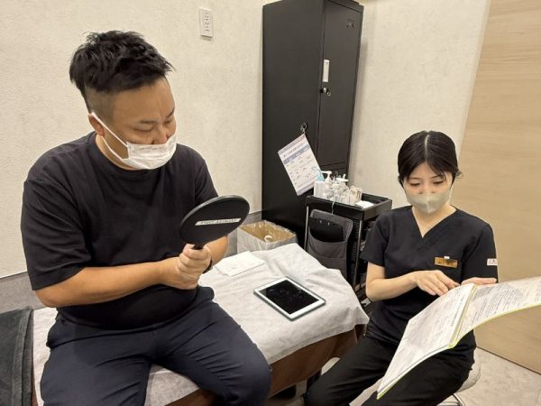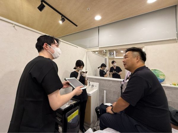 希望を聞きながら、過去の症例写真も見せてもらえるので、「イメージがない」「似合う形が分からない」男性でも心配ありません。
