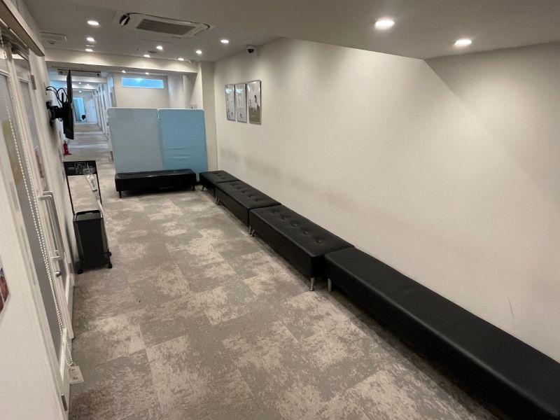 待合スペースは広く、男性が10名以上座っても余裕があり、女性と顔を合わせることもありませんでした。